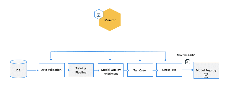Whenever a new model is created, before submitting it to the model “registry”, and as a potential “candidate” to replace the production model, applying these practices to the CI pipelines will help ensure that it works and integrates well with the serving layer.